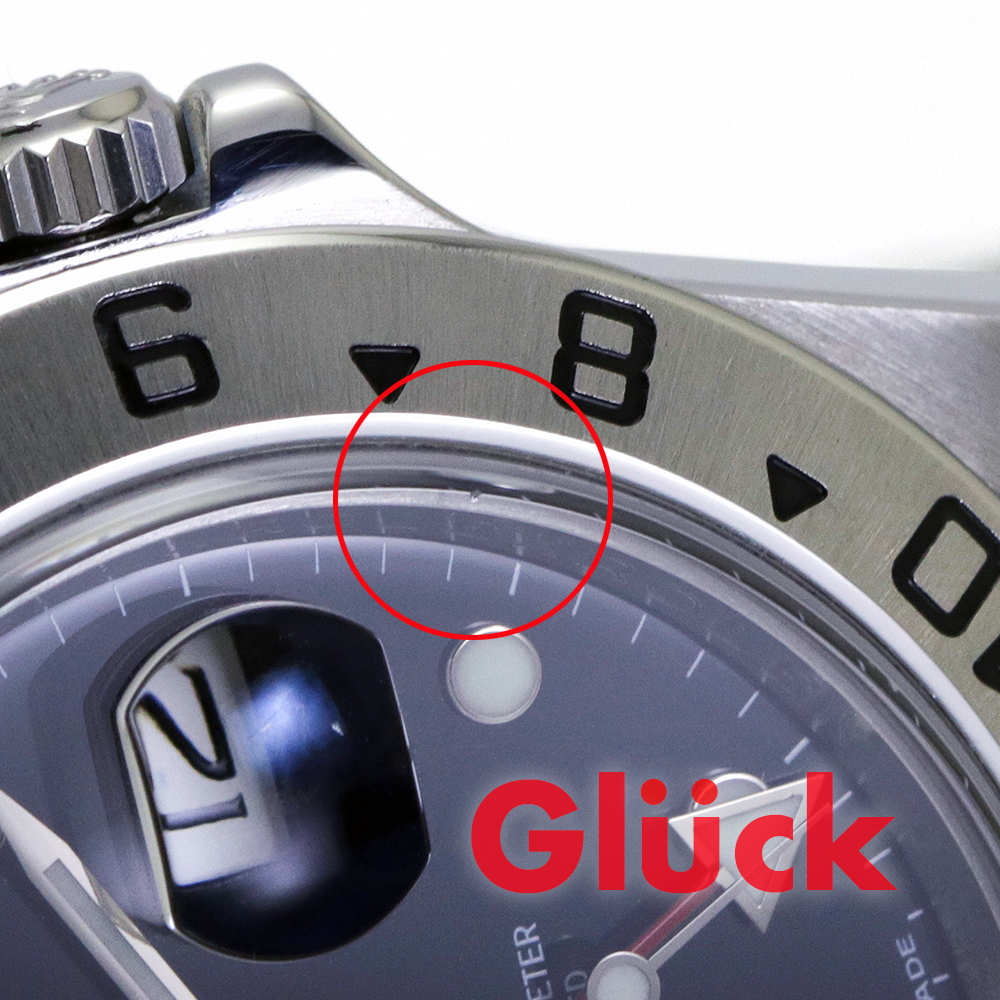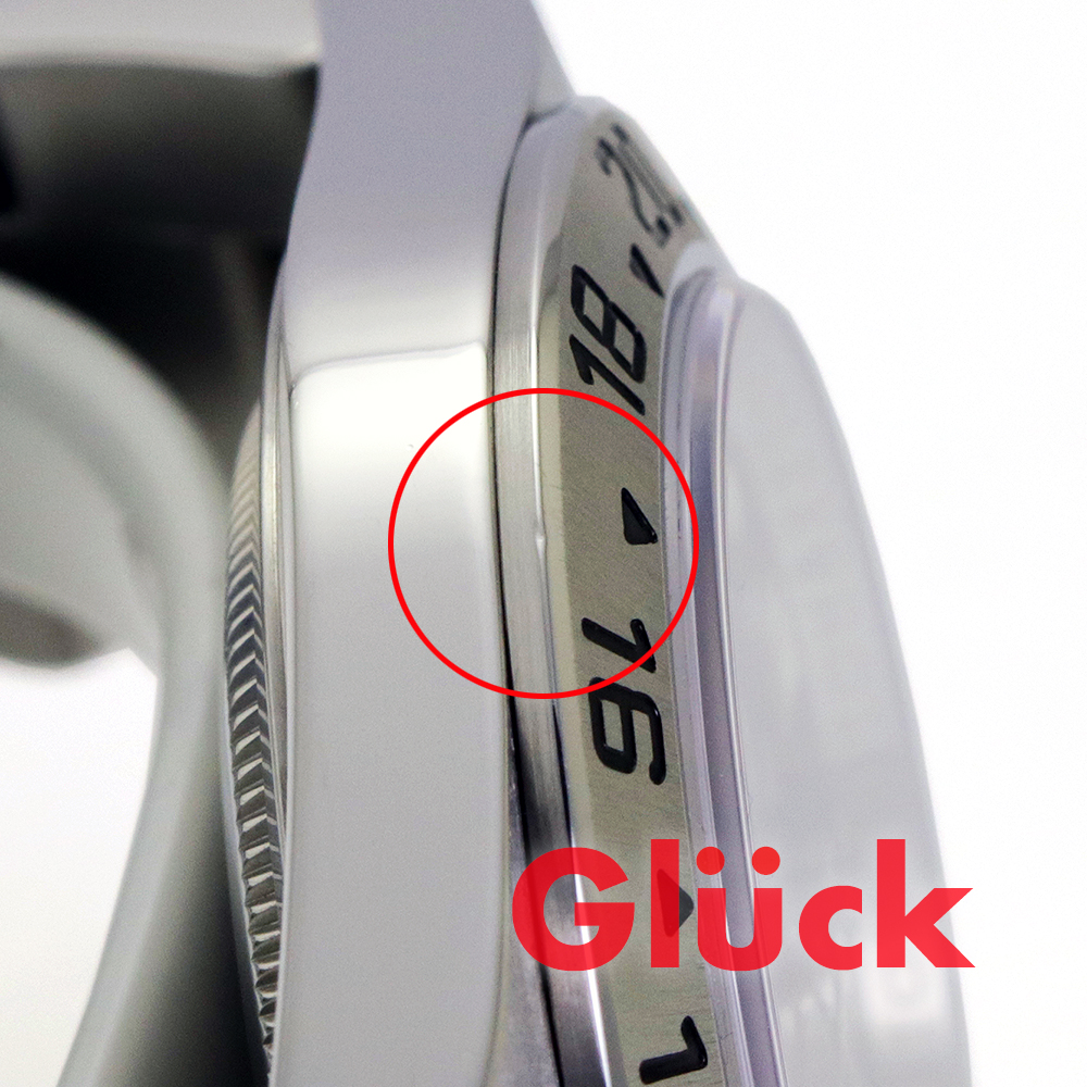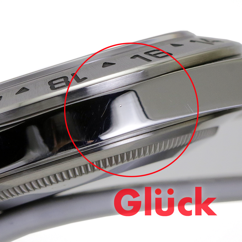 18~19分位置のガラス角に小さな欠けと、ケースサイドとベゼルに打痕があります。