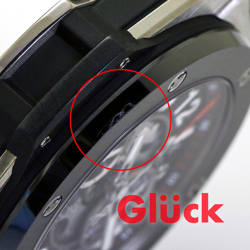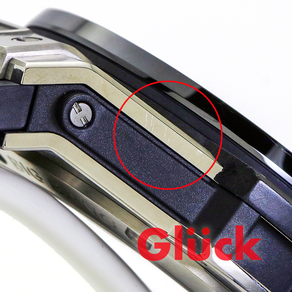 ガラス内側に小さな汚れ、ベゼルにキズ、全体的に使用に伴う小キズがあります。