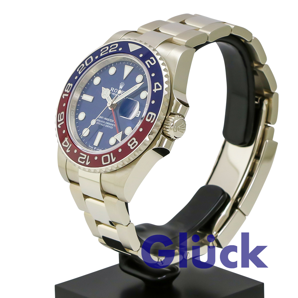 オイスターブレスレットを備えた、18 CT ホワイトゴールドのオイスター パーペチュアル GMTマスターII 126719BLRO、入荷いたしました。