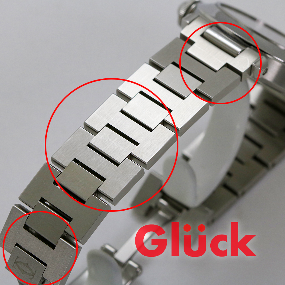 ベゼル、裏蓋、ブレスレットに、全体的に使用に伴うキズがありますが、おおむね良い状態です。