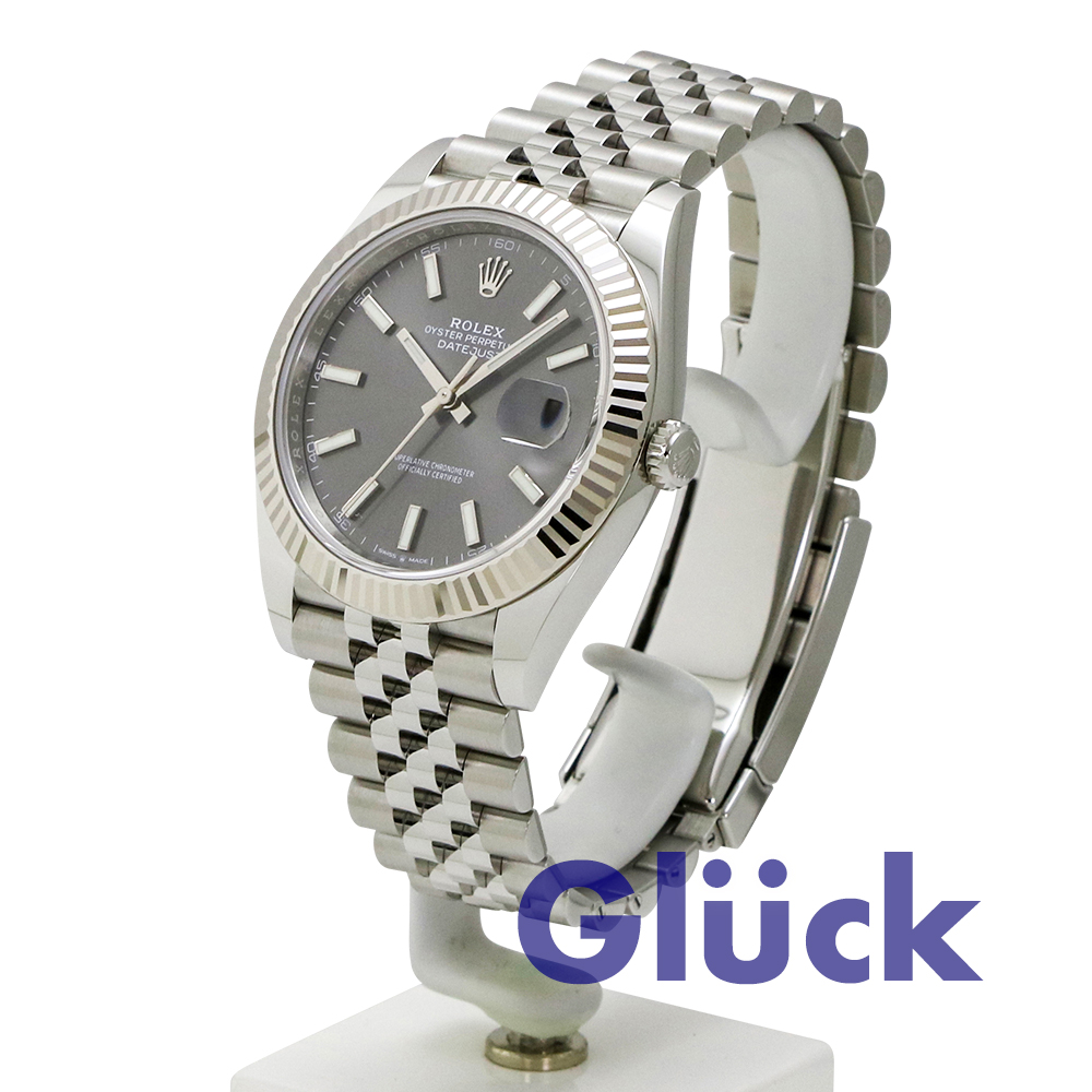 オイスタースチール&ホワイトゴールドのオイスター パーペチュアル デイトジャスト 41は、スレートダイアルとジュビリー(Jubilee)ブレスレットを備えたモデルです。