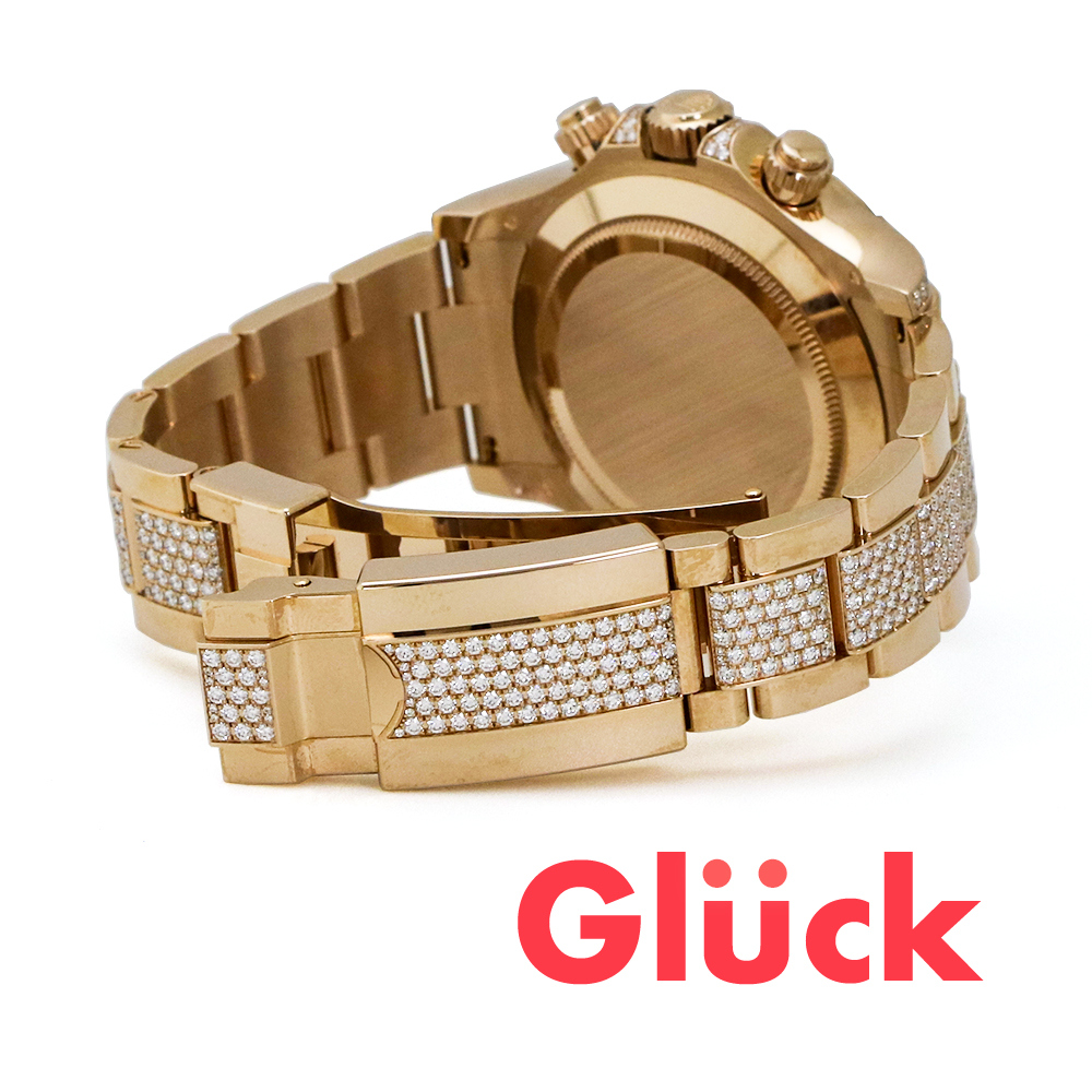 ラグ、ケースサイド、ブレスレットにもダイヤモンドがセッティングされた豪華な1本です。