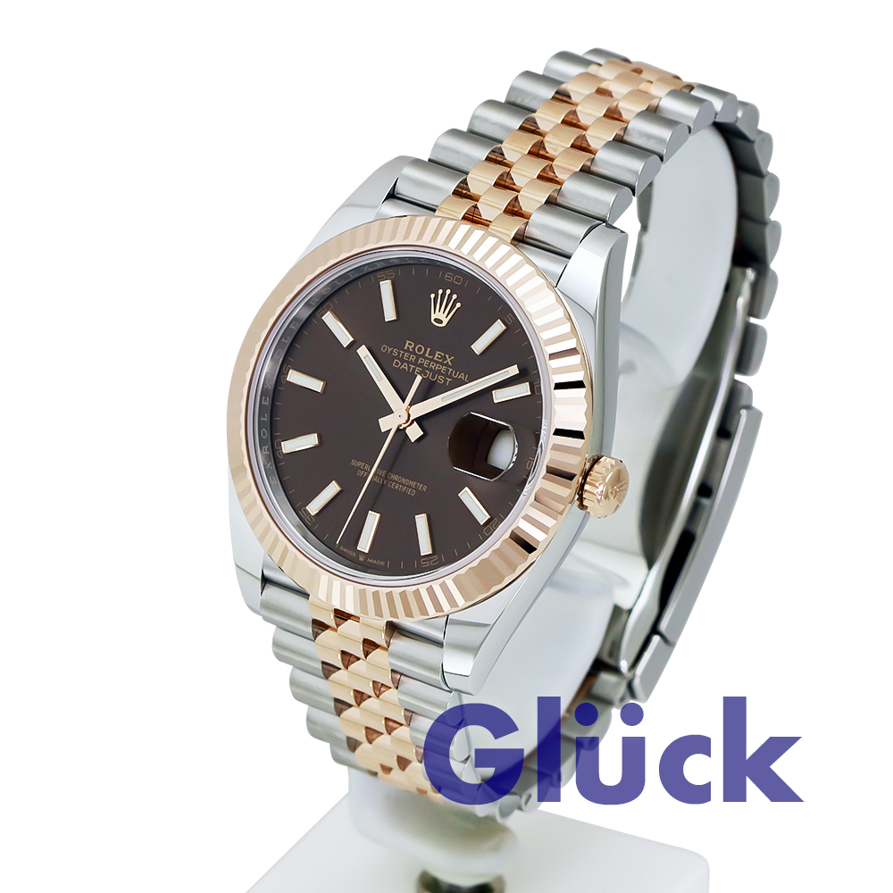 チョコレートダイアルとジュビリーブレスレットを備えた、オイスタースチール&エバーローズゴールドのオイスター パーペチュアル デイトジャスト 41 126331、入荷いたしました。