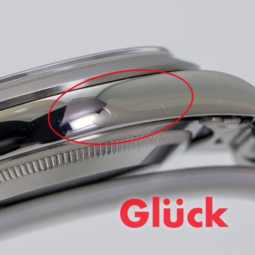 メタルの縁取りが施された"369"のインデックスには、夜光塗料は塗られずに、内側に白いラインが入っています。