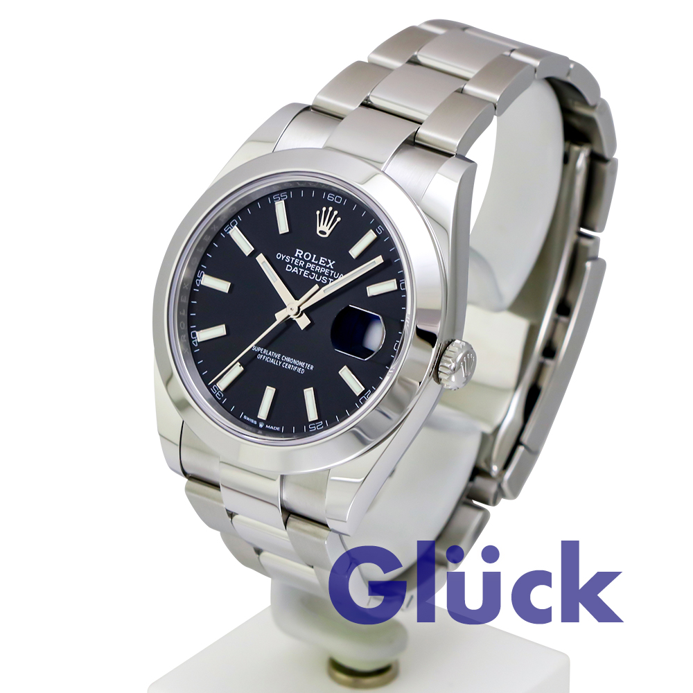 ブライトブラックダイアルとオイスターブレスレットを備えた、オイスタースチールのオイスター パーペチュアル デイトジャスト 41 126300、入荷いたしました。