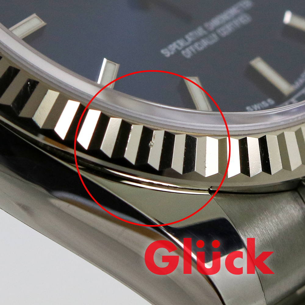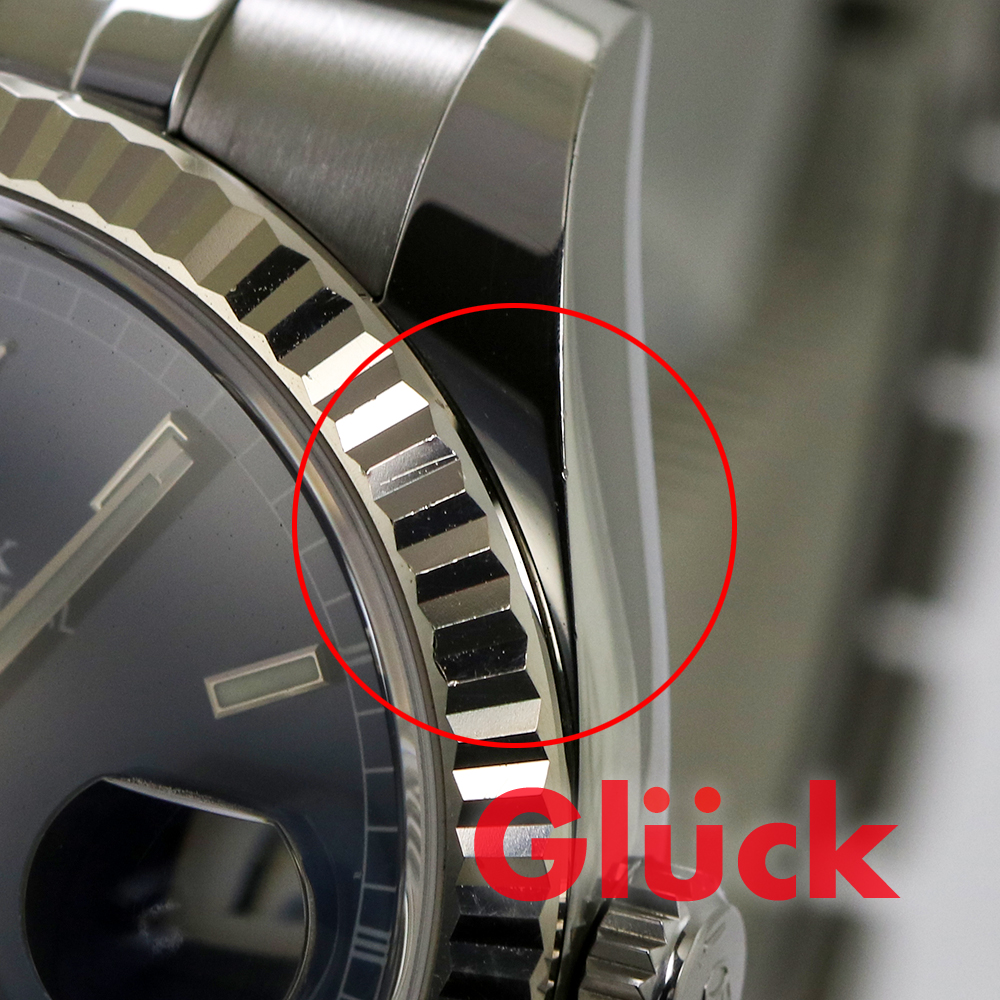 ベゼルに打痕、ケース・裏蓋・ラグに使用に伴うキズ、サイクロプスレンズにコーティング剥がれがあります。