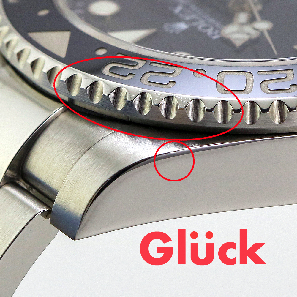 スティックダイアルとは、針軸と6時位置の間のGMT-MASTER II の「II」に、横棒がない書体が使用されているのが特徴です。