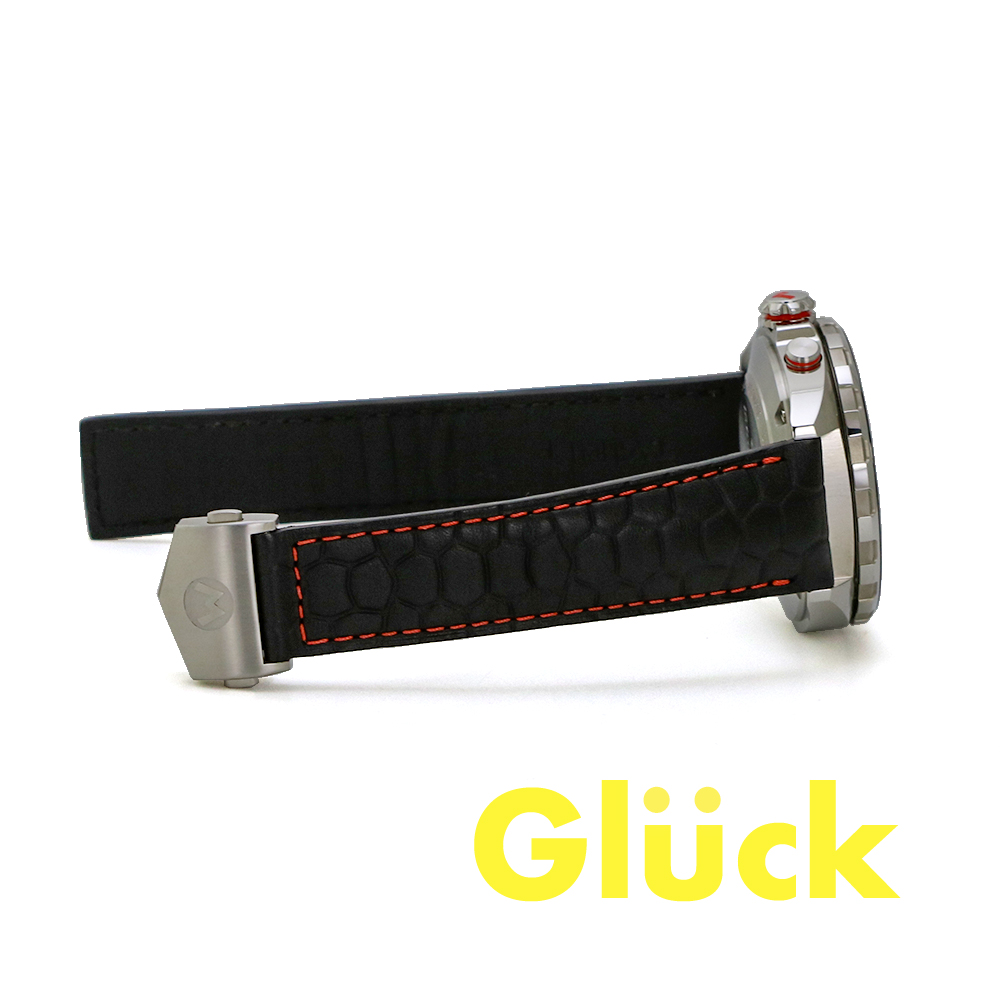 マリオといえば、の赤い帽子のラッカーカラーに縁どられた、9時位置のアスファルトのようなテクスチャーのセコンドインジケーターに注目すると、サブカウンター上にカートに乗ったマリオのデザインが配されています。