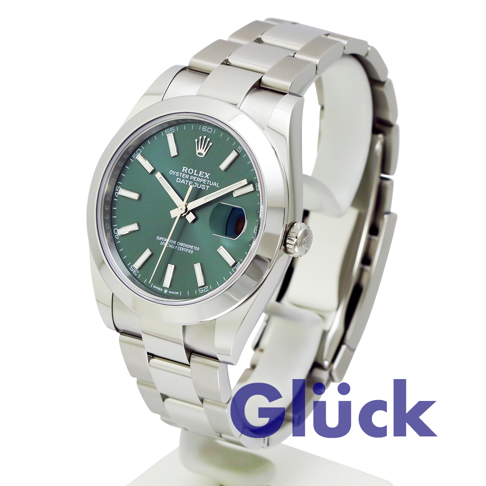 ミントグリーンダイアルとオイスターブレスレットを備えたモデルです。