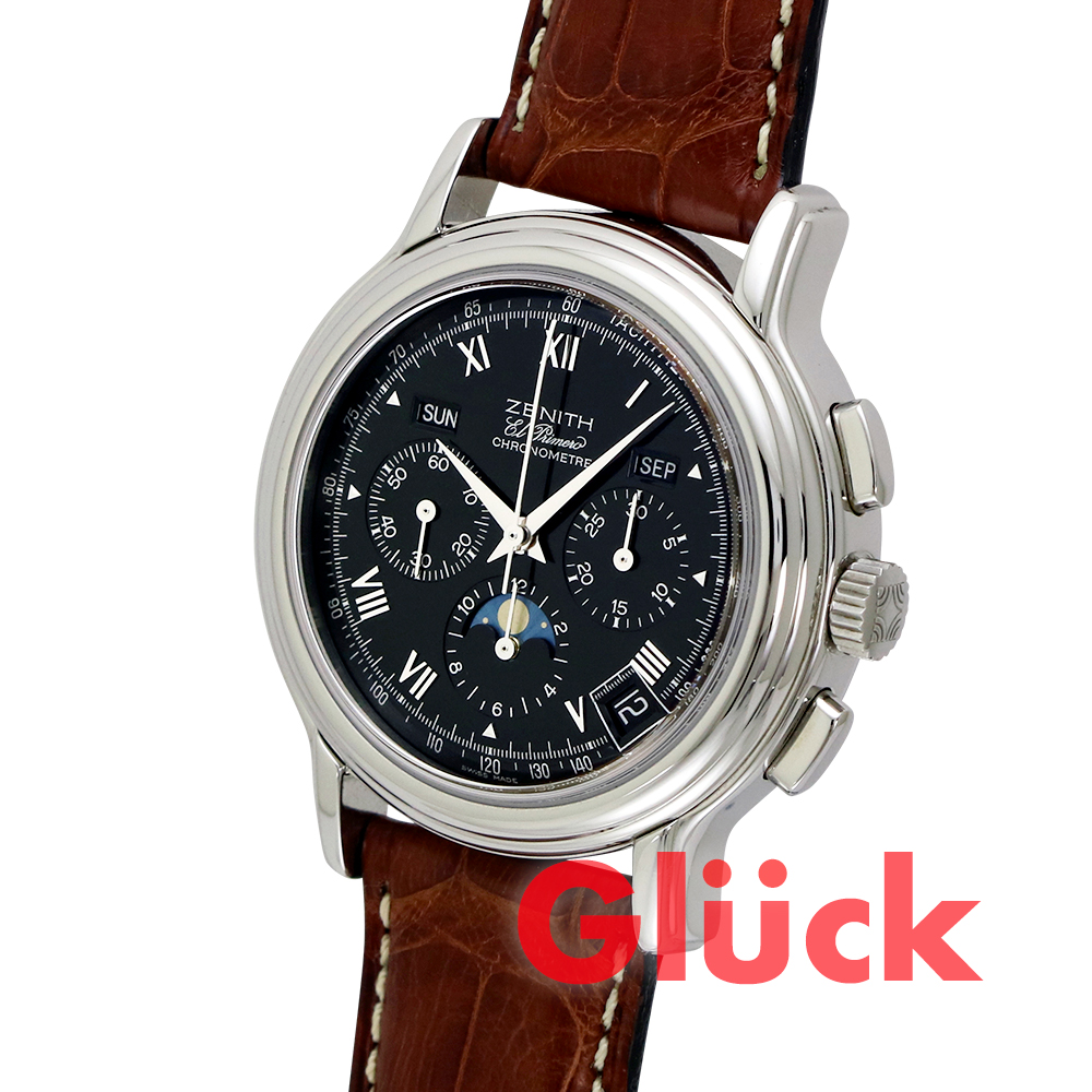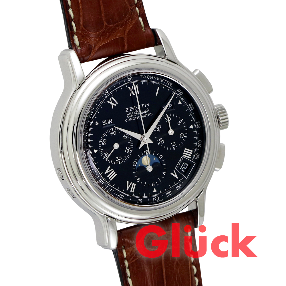 ゼニスを代表する自動巻きクロノグラフムーブメント「エル・プリメロ」に、トリプルカレンダームーンフェイズを備えています。