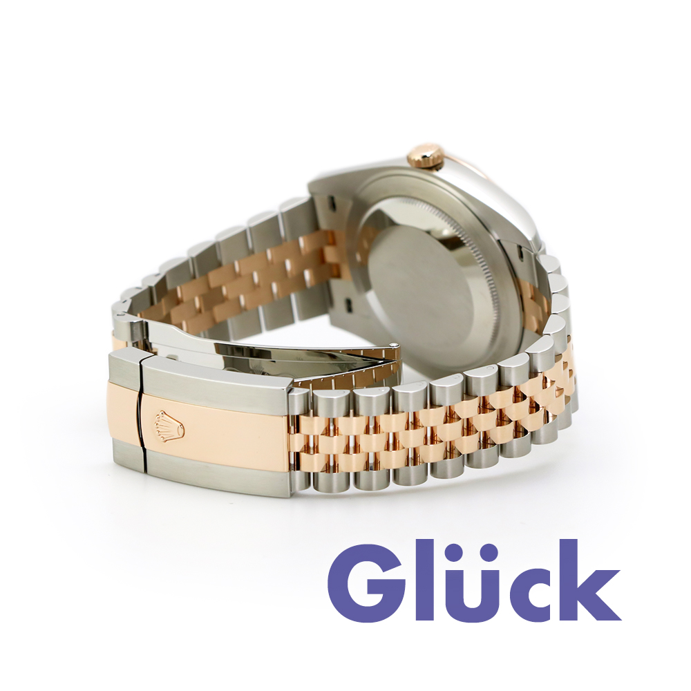オイスタースチール&エバーローズゴールドのオイスター パーペチュアル デイトジャスト 41は、スレートダイアルとジュビリー(Jubilee)ブレスレットを備えています。