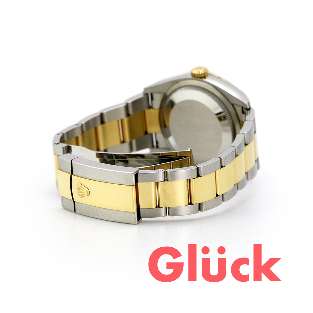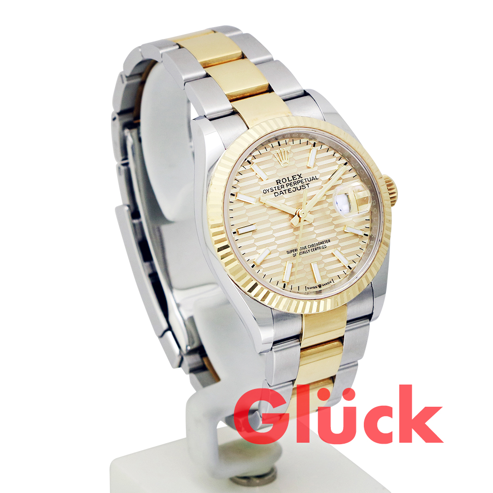 ゴールデン、フルーテッドモチーフダイアルとオイスターブレスレットを備えたモデルです。