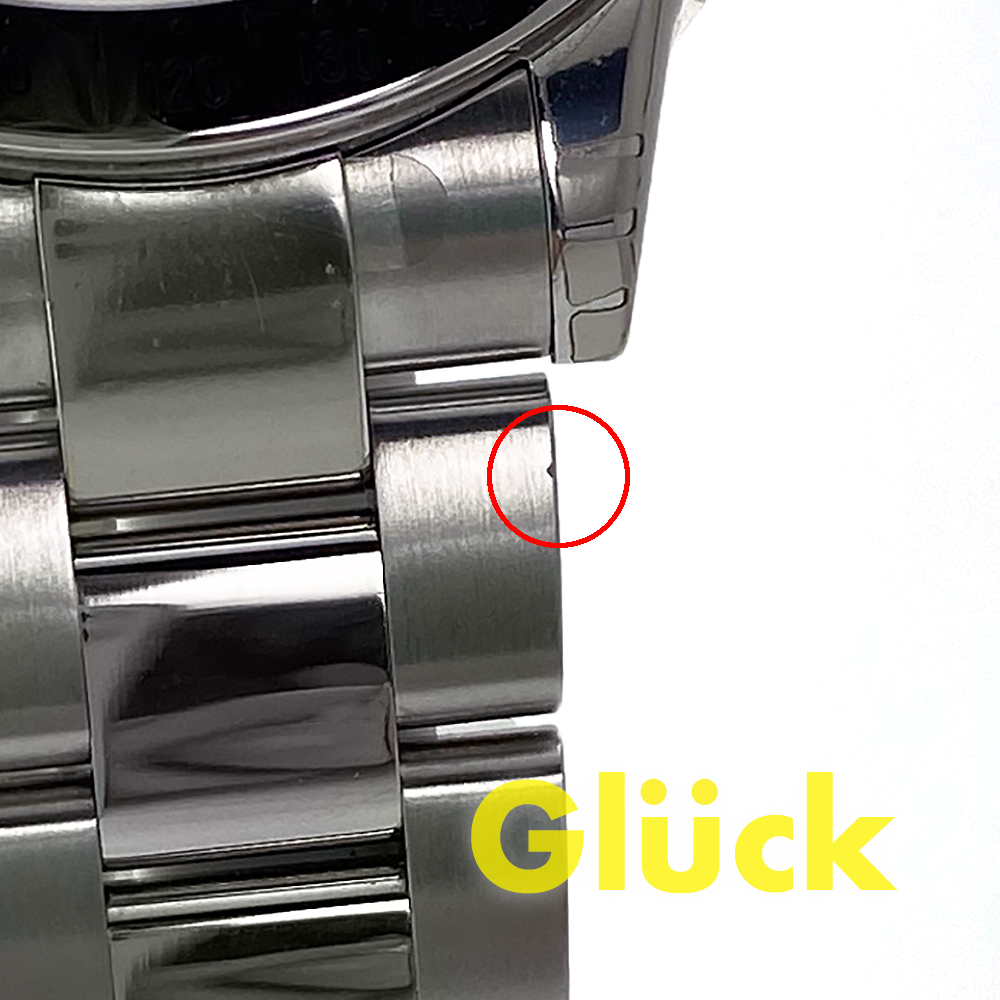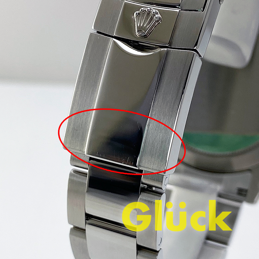 ベゼルやブレス・バックルは、保護シールが付いておりませんので、展示キズ箇所がございます。