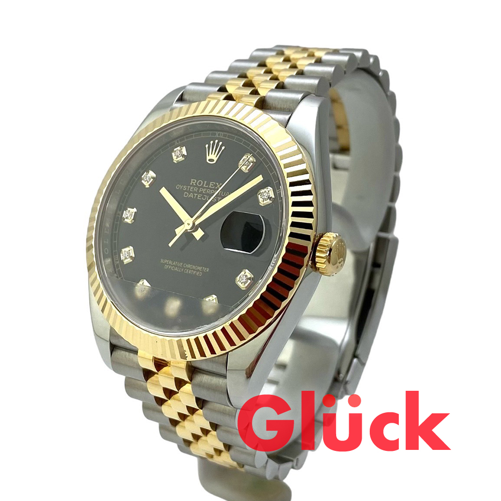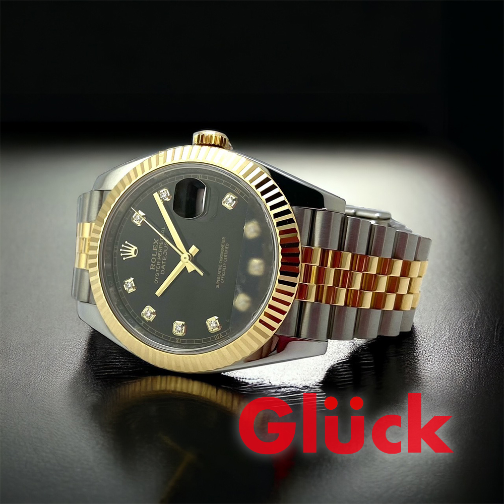 ブライトブラック、ダイヤモンド入りダイアルとジュビリー(Jubilee)ブレスレットを備えたモデルです。