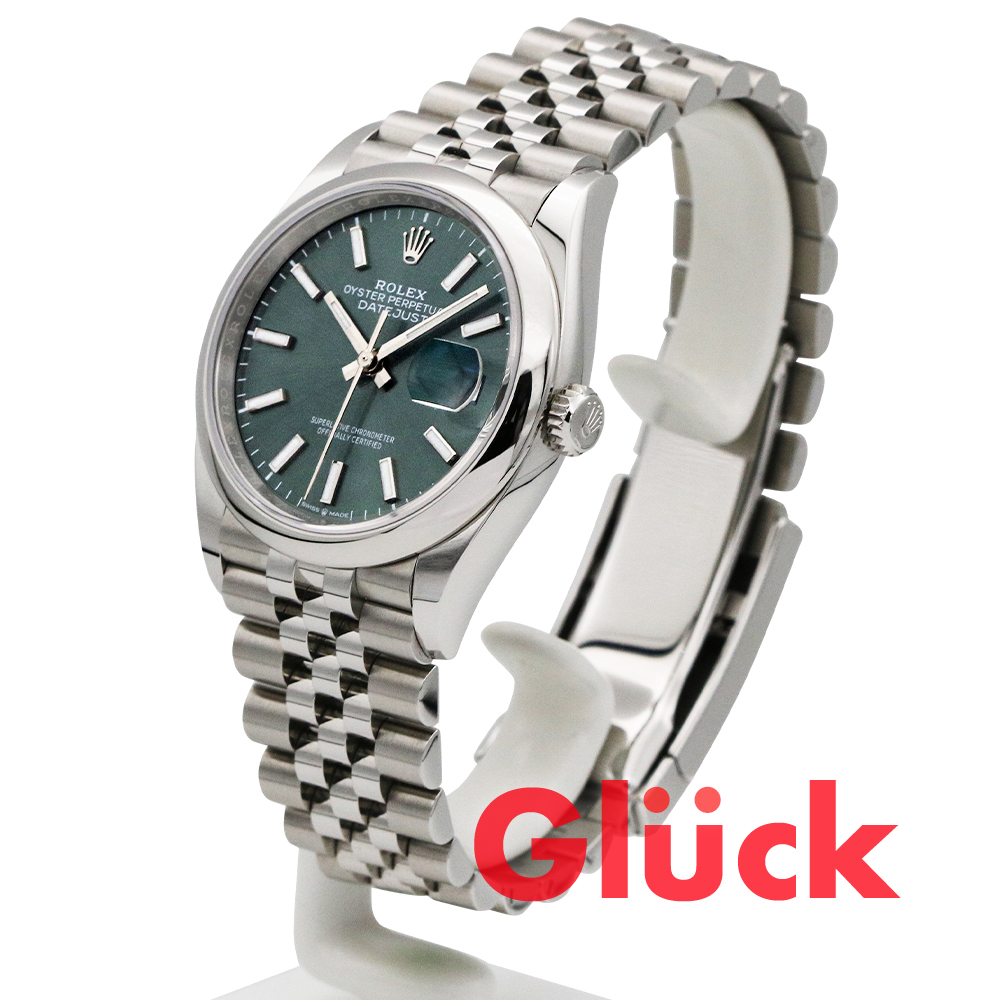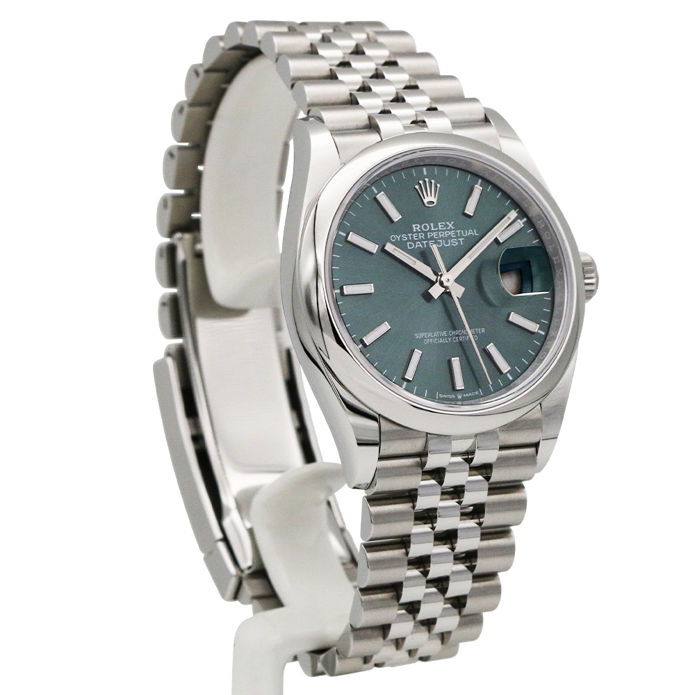ミントグリーンダイアルとジュビリーブレスレットを備えたモデルです。