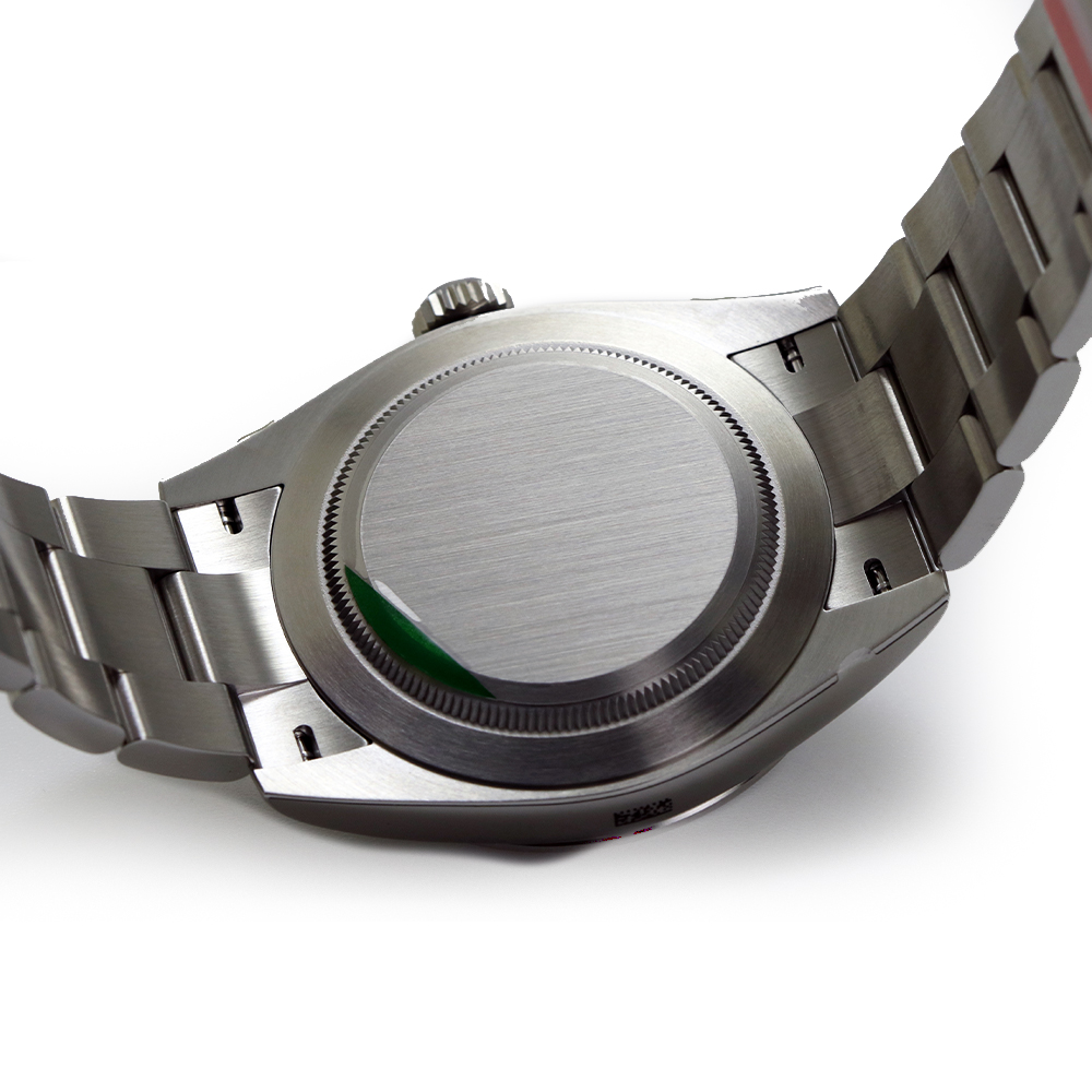特徴的な 3、6、9 の数字と、クロマライト ディスプレイの際立つブラックダイアルを備えたモデルです。
