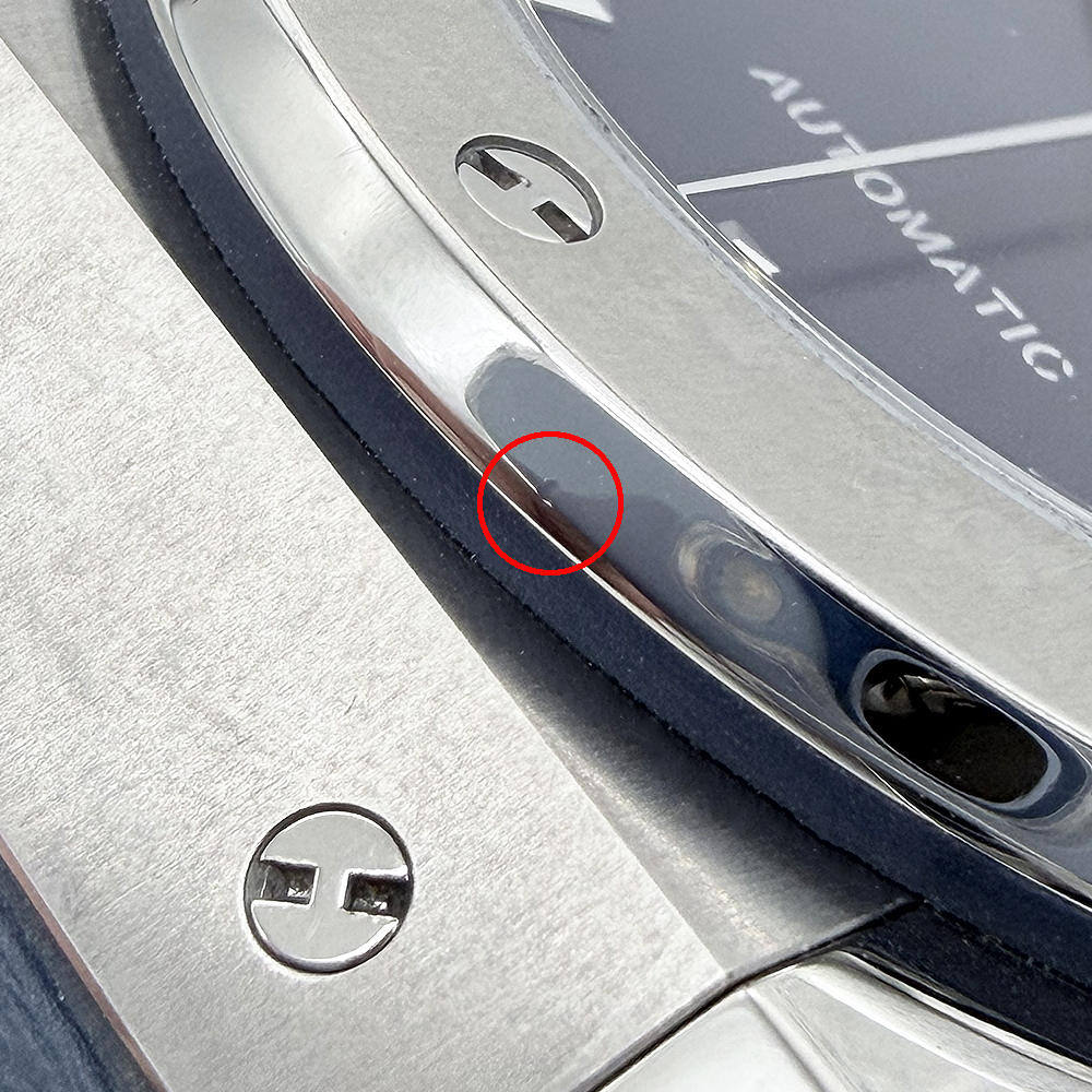 7~8時位置のガラスコーティングに小キズ、ベゼル6時位置に打痕跡がありますが、全体的にきれいな状態です。