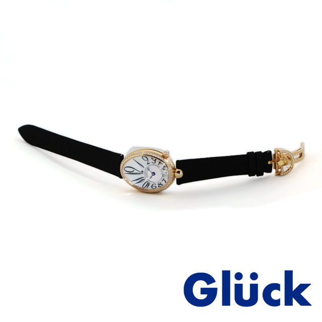 ベゼルにはダイヤモンドがセッティングされ、マザーオブパールのダイヤルと共に華やかさを演出致します。