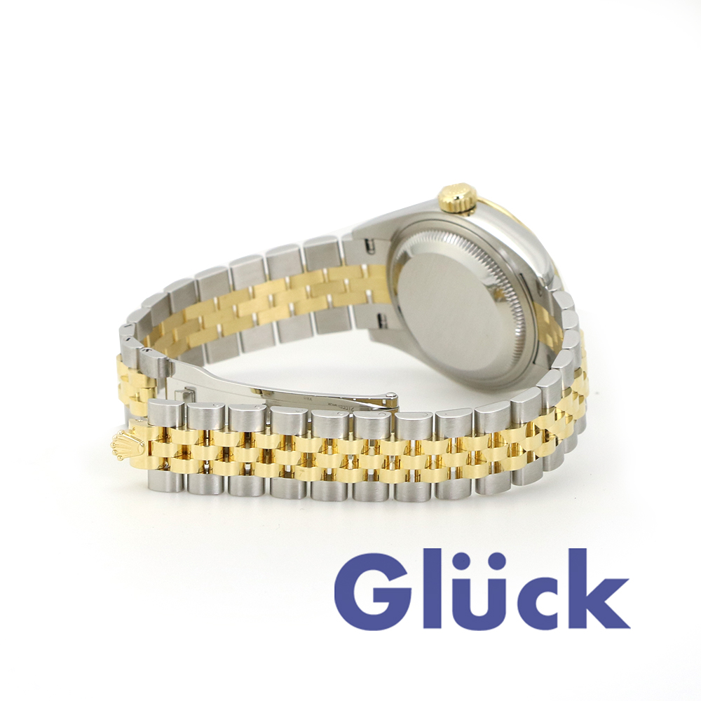 こちらはシャンパンカラー、バーインデックスダイアルとジュビリー(Jubilee)ブレスレットを備えたモデルです。