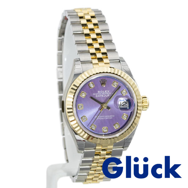文字盤もリニューアルされ、タペストリー柄のラベンダー文字盤には10ポイントのダイヤモンドがセッティングされています。