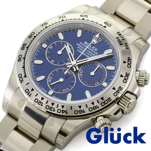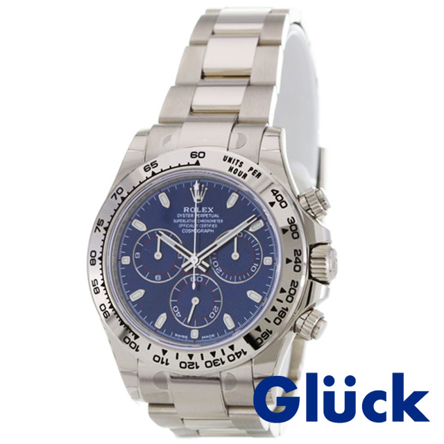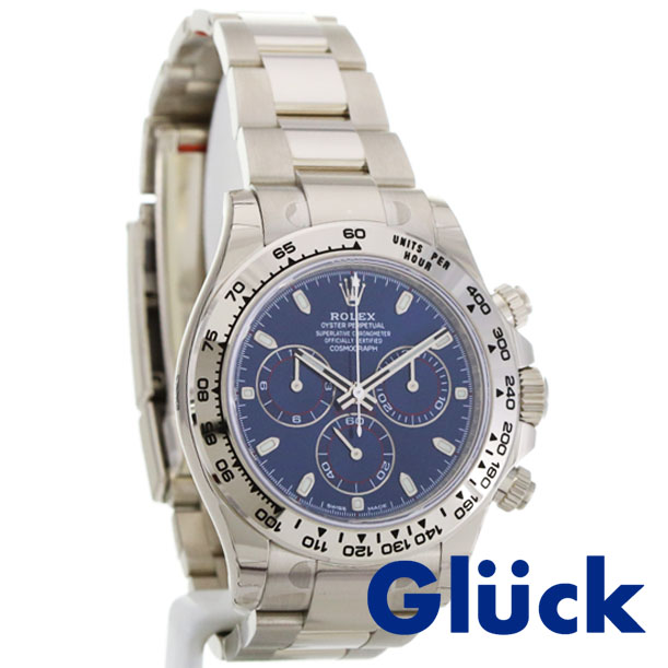 ホワイトゴールド製のデイトナで、2016年に新たに加わったブルー文字盤です。