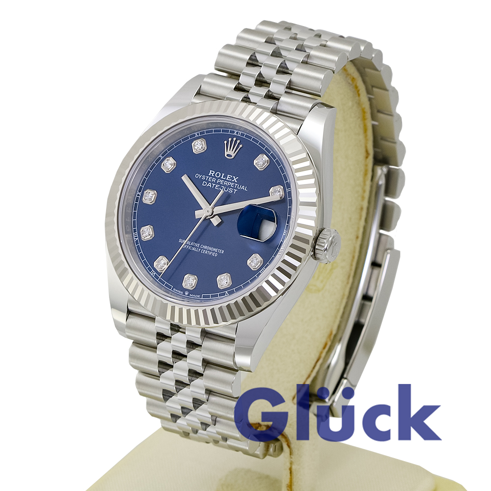 ブライトブルー、ダイヤモンド入りダイアルとジュビリー(Jubilee)ブレスレットを備えた、オイスタースチール&ホワイトゴールドのオイスター パーペチュアル デイトジャスト 41 126334G、入荷いたしました。