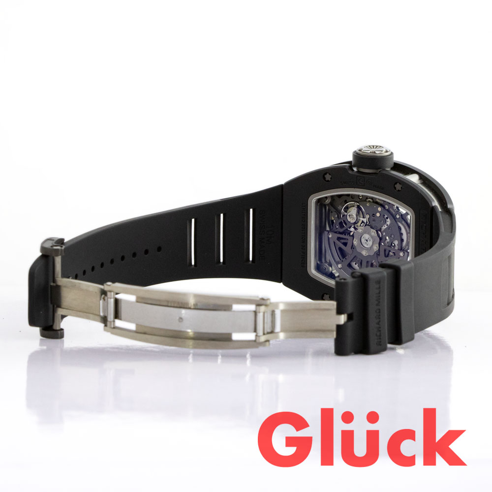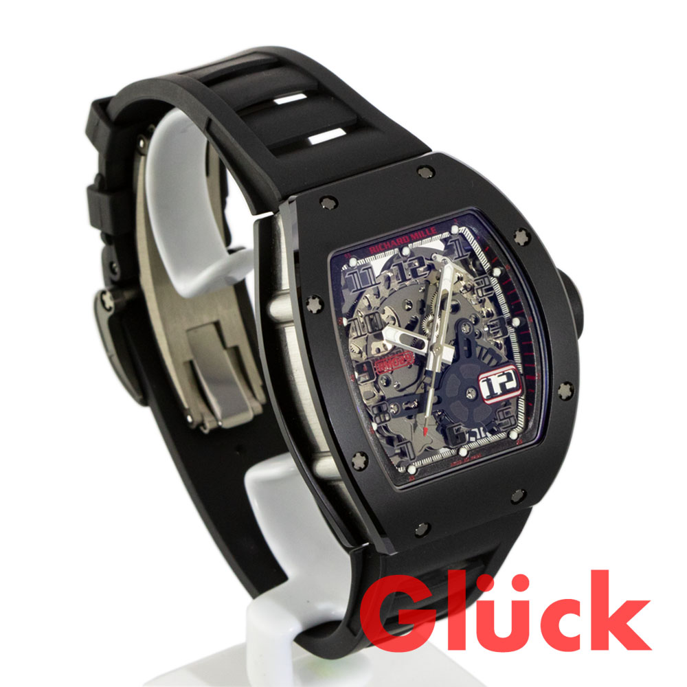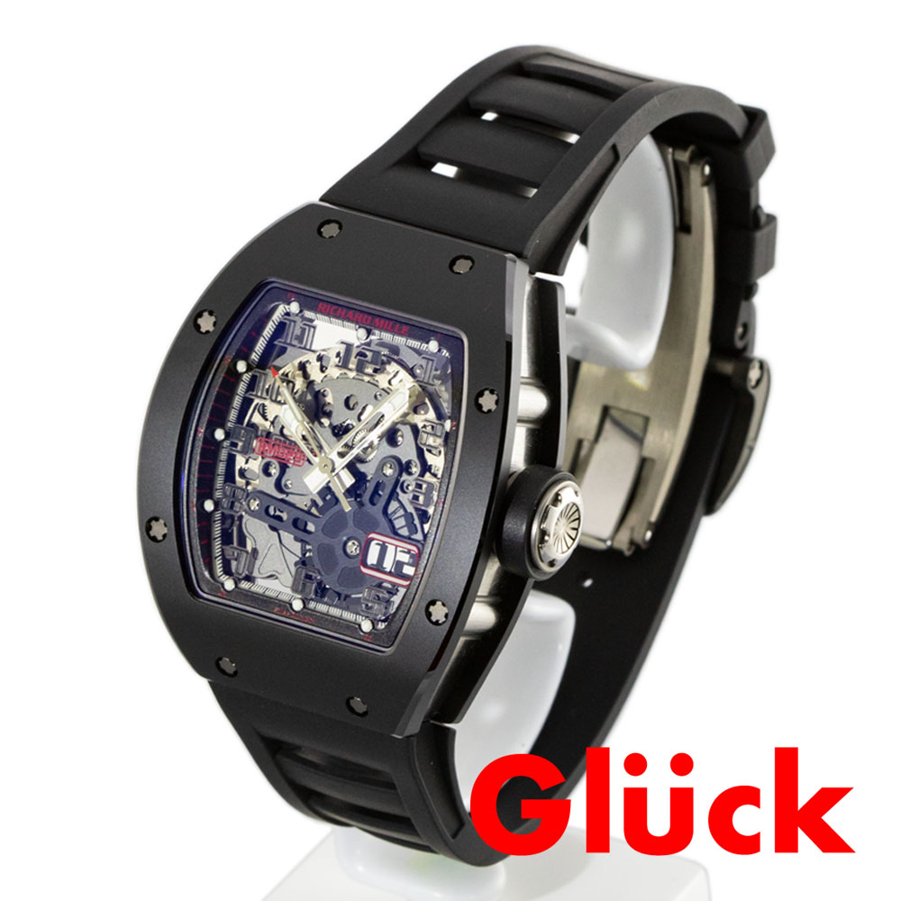RM 029の日本限定第2弾。ベゼルとケースバックにTZPセラミックスブラックセラミックスを採用致しました。全体を黒でまとめることによって、インデックスのレッドが際立ちます。 搭載している自動巻きムーブメントには、ユーザーのライフスタイルに合わせて巻き上げ効率を調整できる「可変慣性モーメントローター」機構が採用されています。