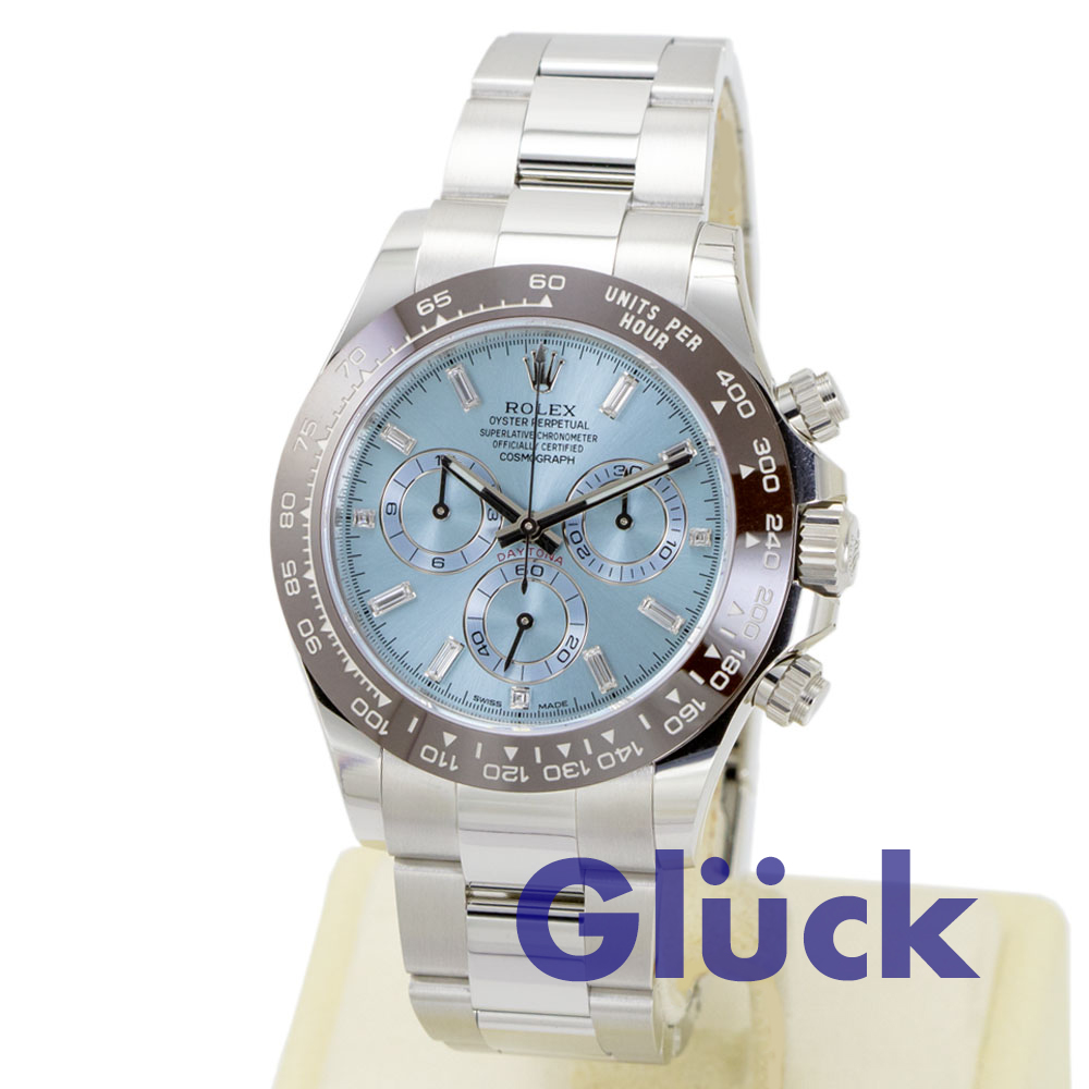 アイスブルーダイアルとオイスターブレスレットを備えた、プラチナのオイスター パーペチュアル コスモグラフ デイトナ 116506Aが、入荷いたしました。