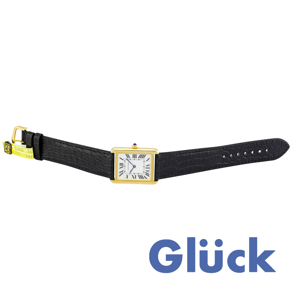 シンプルな美しさの中にブルースチールの針やローマンインデックスなど、カルティエらしさに溢れている一本です。