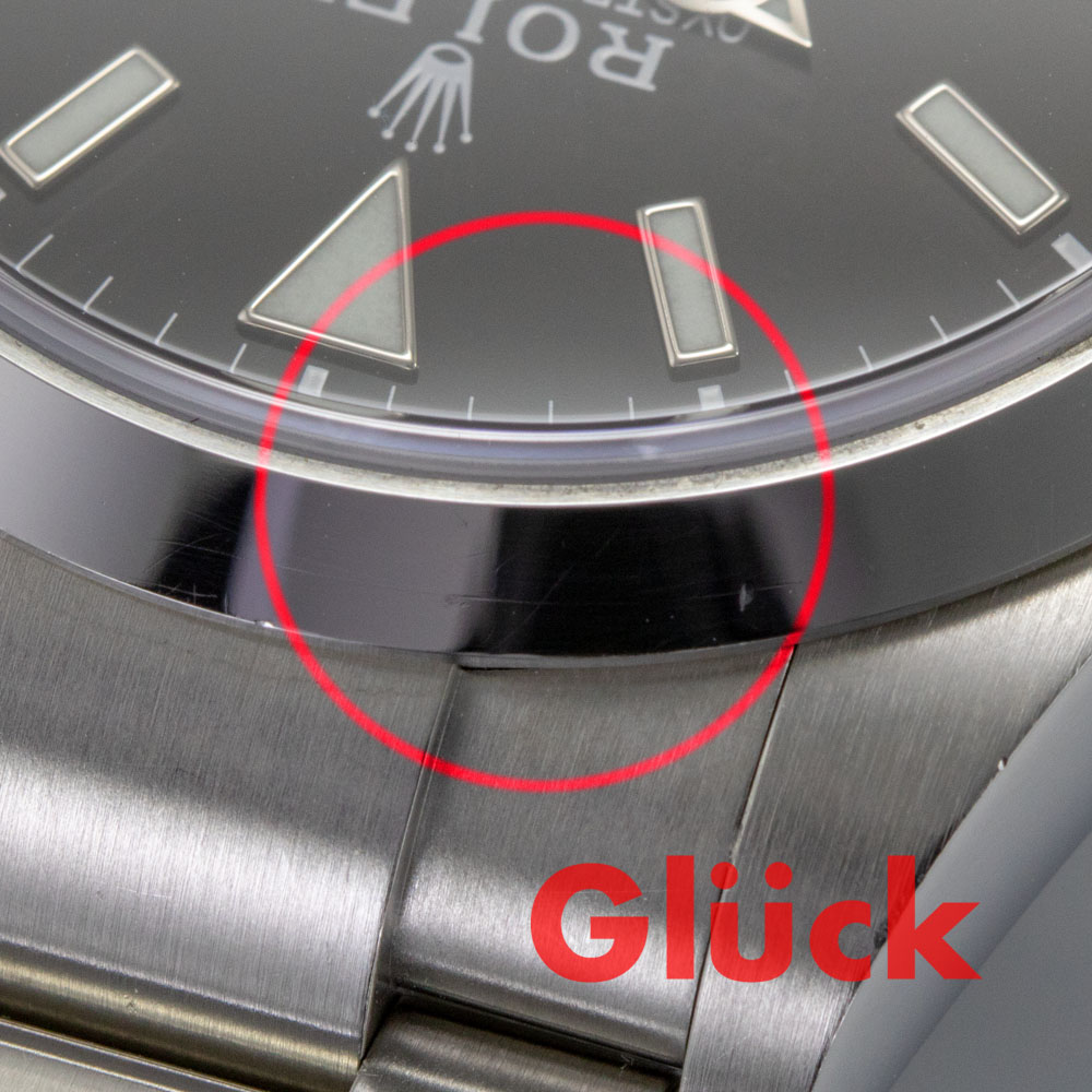 ベゼルに打痕やキズがあり、全体的に使用に伴うキズがあります。